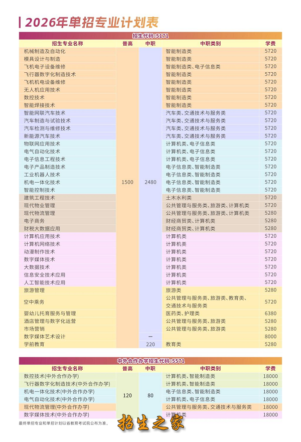 2026年单招招生专业计划一览表