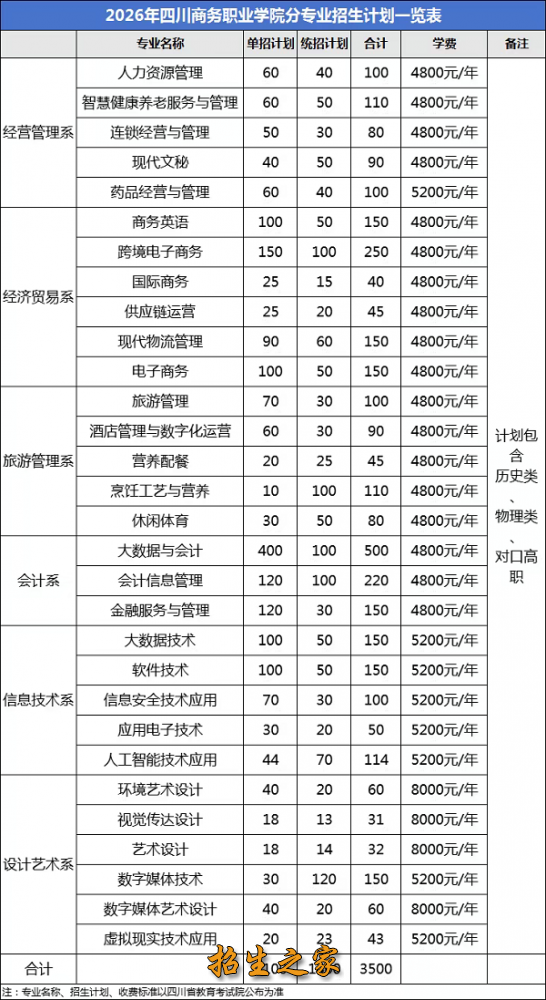 【公办】四川商务职业学院2026年单独招生简章(招生专业计划及25年单招分数线)