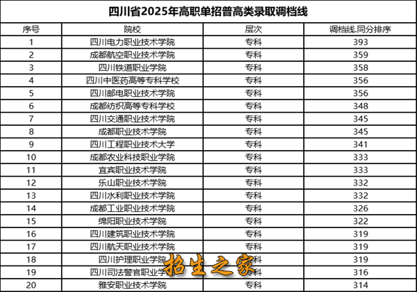 2025年四川单招排名前20公办院校名单及调档线