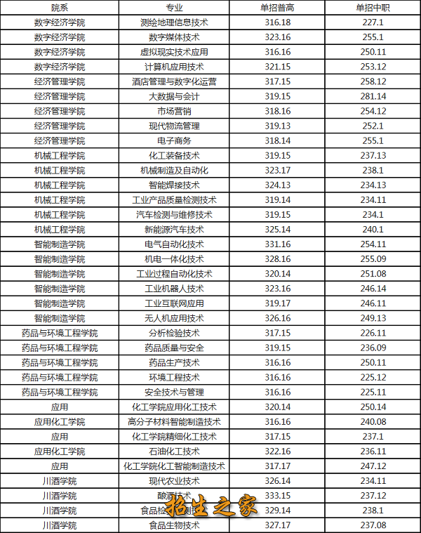2025年单招各专业录取分数线