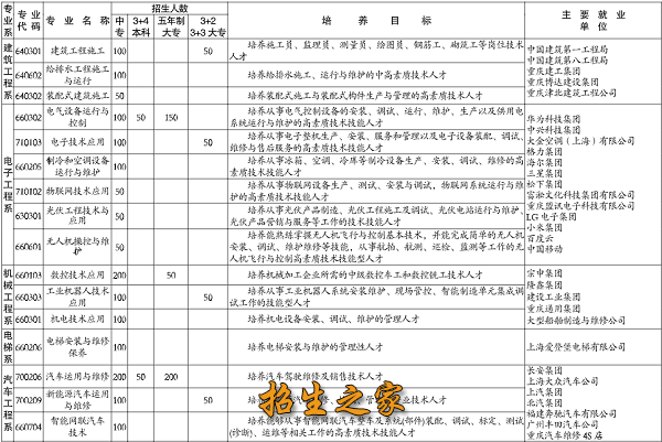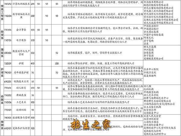 招收重庆市内外思想品德好、身心健康的应届初中毕业生,其中3+4本科和护理专业只招收重庆市籍的应届初中毕业生。幼儿保育及护理专业学生要求:男生身高160cm、女生身高155cm以上、普通话较好、身体健康、文化课成绩400分以上的应届初中毕业生。