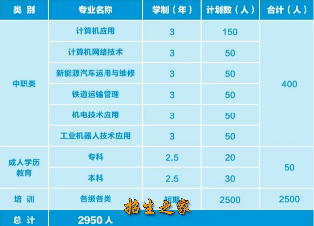 学校现有教职工47人,专任教师38人,其中高级讲师8人,讲师25人,双师型教师38人,在校学生500余人,近年来中职毕业学生3600余人,学历教育毕业1000余人,完成各类短期培训10000人次。